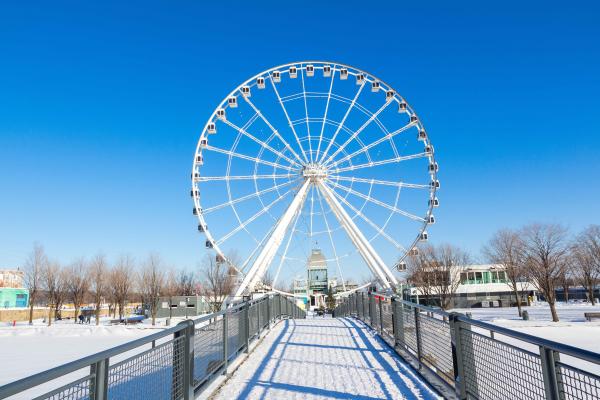 • En hiver, l’île Bonsecours dévoile toute la poésie des paysages urbains montréalais. De jour, on y flâne tranquillement ; en soirée, la Grande Roue de Montréal illuminée et le bassin enneigé créent une ambiance douce et féérique, parfaite pour une promenade - à conclure avec une boisson chaude au café situé à ses pieds.
