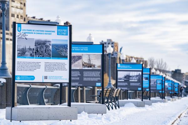 • Au fil d’une promenade ponctuée de panneaux patrimoniaux, le Vieux-Port de Montréal dévoile son riche passé maritime, industriel et humain. Des grands bâtisseurs aux travailleuses et travailleurs du port, chaque panneau éclaire un chapitre marquant de ce site emblématique.
