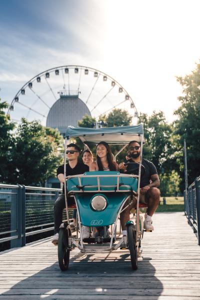 Inspirés des grandes villes européennes, les quadricycles ou vélos multiplaces vous permettent de visiter le Vieux-Port de Montréal d’une façon amusante